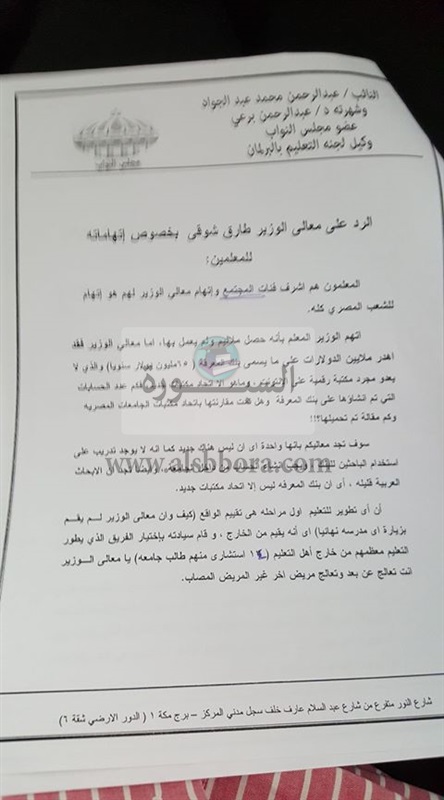 قال الدكتور عبدالرحمن البرعي وكيل لجنة التعليم بالبرلمان ، المعلمون هم أشرف فئات المجتمع ، واتهام الدكتور طارق شوقي لهم هو اتهام بالمجتمع المصري كله