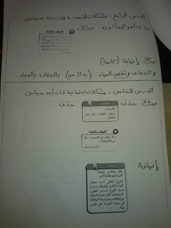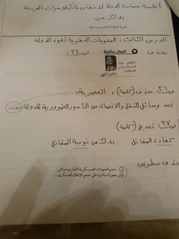 وأوضحت المصادر أن مذكرة احتوت على التعديلات الجديدة برقم الصفحة بالعبارات، التى تم حذفها وإزالتها ذهبت إلى دور النشر الخارجية التى تتمكن من إجراء التعديلات المطلوبة وفق التعديلات الواردة من قبل المسئولين عن المنهج، مشيرة إلى أن كتاب الوزارة تمت طباعته الآن ولكن يجب فتح تحقيق ومحاسبة المقصرين فى هذا الأمر، مطالبا من الدكتور رضا حجازى رئيس قطاع التعليم العام بالوزارة ضرورة بحث الأمر باعتباره المسئولين عن المناهج يخضعون لرقابته بشكل مباشر.