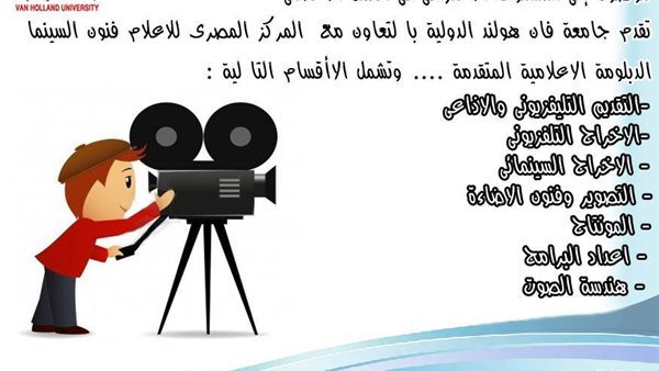 تقدم جامعة فان هولند بالتعاون مع المركز المصرى للاعلام وفنون السينما الدبلومة الاعلامية المتقدمة