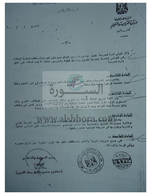 تنشر "السبورة " قرار وزارة التربية والتعليم الخاص بتكليفات جديدة لمديري المدارس والمديريات التعليمية.