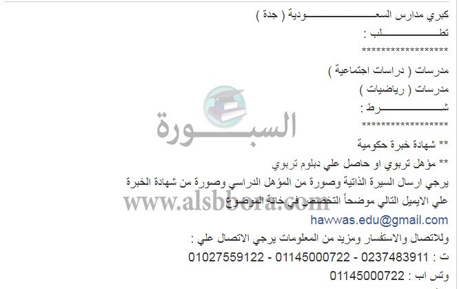 تعلن مدرسة من كبري المدارس السعودية عن وظائف جديدة للمعلمين والمعلمات وذلك وفقا لنص الإعلان التالي:-