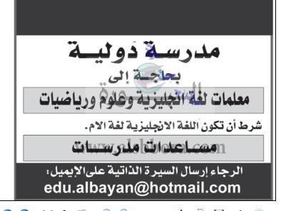 تعلن مدرسة من كبري المدارس القطرية عن وظائف جديدة للمعلمين والمعلمات وذلك وفقا لنص الإعلان التالي:-