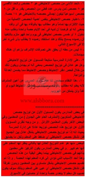 ينشر موقع السبورة كل ما يجب أن يعلمه المعلمين عن حصص الاحتياط فى جميع المراحل التعليمية "الابتدائية والاعدادية والثانوية".