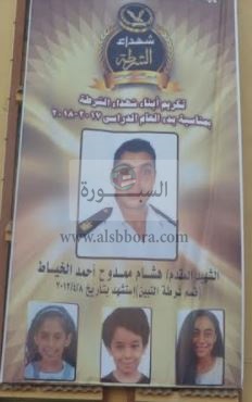 وأعلن عبدالرءوف علام رئيس مجلس إدارة مدارس الامتياز للغات والقمم الدولية إعفاء أبناء الشهيد الثلاثة من المصروفات الدراسية، واستعداد المدرسة لاستقبال الطلاب من أبناء شهداء الجيش والشرطة واعفائهم من المصروفات تقديرا للدور الوطني والتضحيات العظيمة لآبائهم والتي لا تقدر بثمن.