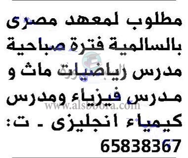 تعلن مدرسة خاصة في دولة الكويت عن وظائف جديدة للمعلمين والمعلمات وذلك وفقا لنص الإعلان التالي:-