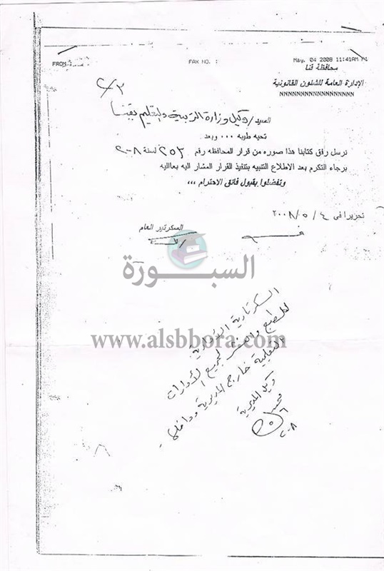 ينشر موقع السبورة قرار محافظ قنا رقم 253 لسنة 2008م بشأن قواعد صرف الجهود غير العادية (مناطق نائية) لاعضاء هيئة التدريس، والذى جاء كالتالى: