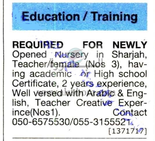تعلن كبرى المدارس بدولة الامارات العربية الشقيقة عن حاجتها الى معلمين، وعلى الراغبين فى التقدم ارسال السيرة الذاتية عبر الايميل المنشور فى الاعلان التالى: