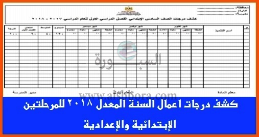 ينشر موقع السبورة كشف توزيع درجات الفصل الدراسي الاول طبقا للتعديل الأخير والغاء امتحانات الميدترم وتوزيع درجاتها على الشهور للمرحلتين الابتدائية والاعدادية للعام الدراسي 2017/2018.