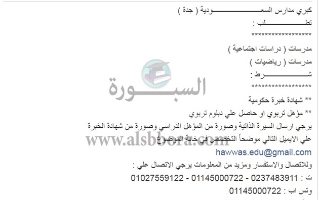 تعلن مدرسة خاصة بالسعودية عن وظائف جديدة للمعلمين والمعلمات وذلك وفقا لنص الإعلان التالي :-