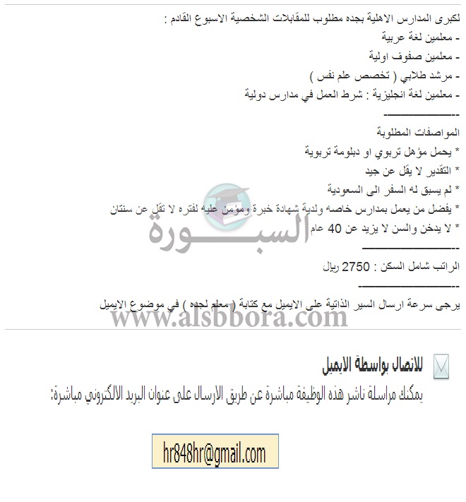 تعلن مدرسة خاصة في السعودية عن وظائف جديدة للمعلمين والمعلمات وذلك وفقا لنص الإعلان التالي:-