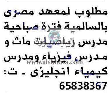 تعلن مؤسسة تعليمية كويتية عن وظائف جديدة للمعلمين والمعلمات مصريين وذلك وفقا لنص الإعلان التالي