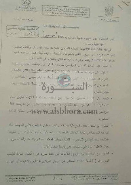 اصدرت الاكاديمية المهنية فاكسا هاما الى جميع المعلمين المرشحين للترقى للعام الدراسى 2018/2017، والذى يبلغ عددهم أكثر من نصف مليون معلم وجاءت التعليمات التى وردت بالفاكس كالتالى، وللدخول على موقع الاكاديمية اضغط هناااااااااااا.