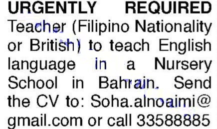 تعلن مدرسة خاصة في البحرين تعلن عن وظائف جديدة للمعلمين والمعلمات وذلك وفقا لنص الإعلان التالي:-