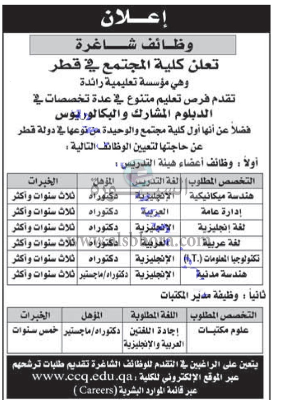تعلن جامعة قطر عن وظائف جديدة لأعضاء هيئة التدريس"من حملة الماجستير والدكتوراه" علما بأن أخر موعد للتقديم 9 أكتوبر وفقا لنص الإعلان التالي: