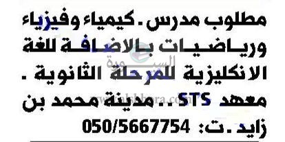 تعلن مؤسسة تعليمية في دولة الإمارات عن الحاجة للتعاقد مع معلمين ومعلمات وفقا لنص الإعلان التالي:-