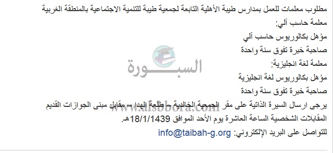 تعلن مدرسة خاصة في السعودية عن الحاجة للتعاقد مع معلمين ومعلمات وفقا لنص الإعلان التالي:-