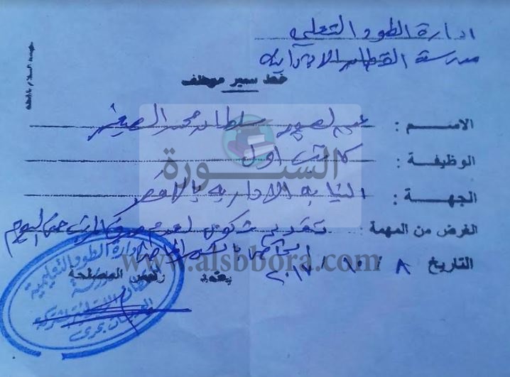 تقدم عبد الصبور سلطان محمد الصغير ،كاتب بمدرسة القطان الابتدائية التابعة لإدارة الطود باستغاثة مكتوبة لرئيس نيابة الأقصر الإدارية ، بسبب تأخبر راتبه عن الشهر الماضي رغم تسليم كشوف المرتبات للوحدة الحسابية بتاريخ 2/9/2017