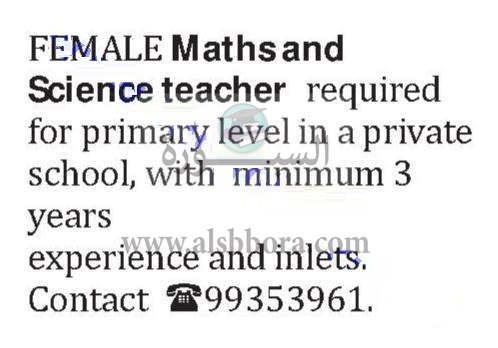 تعلن مدرسة خاصة في سلطنة عمان عن وظائف جديدة للمعلمين والمعلمات وذلك وفقا لنص الإعلان التالي: