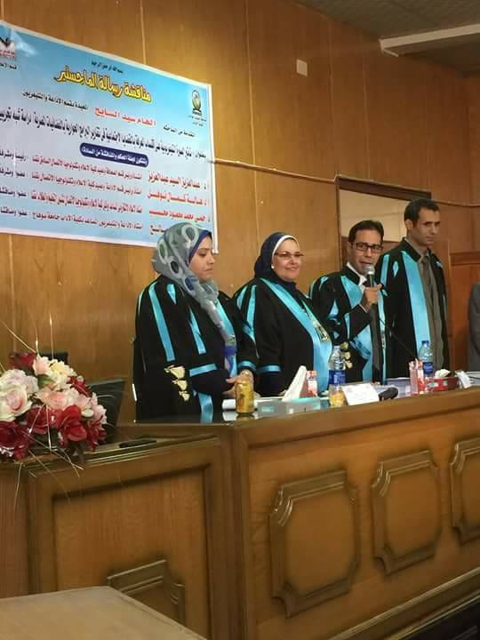 وتكونت لجنة المناقشة من الدكتور عبد العزيز السيد مشرفا ووعضوا والدكتور حلمى محسب مناقشا وعضوا والدكتورة فاطمة الزهراء صالح الاستاذ المساعد باداب سوهاج مناقشا وعضوا والدكتورة هالة نوفل مشرفاً وعضوا