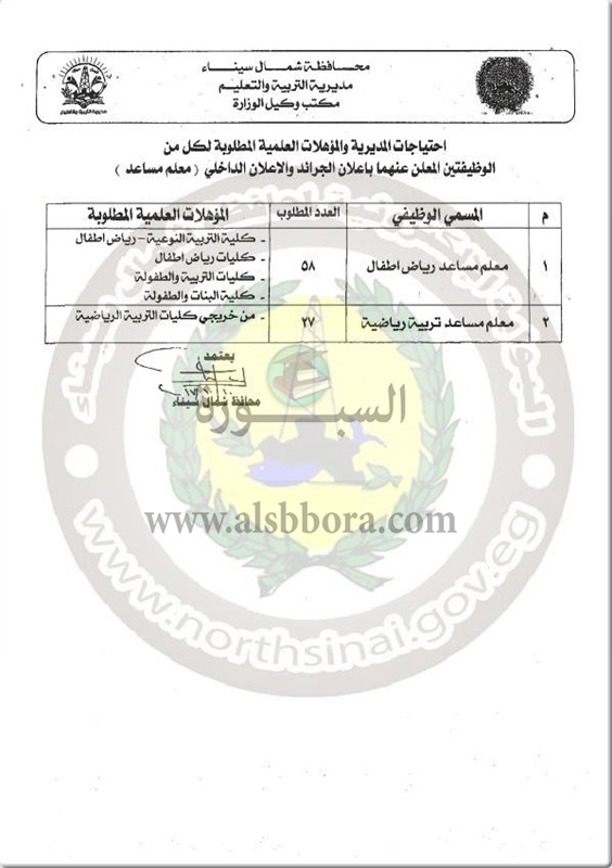 ينشر موقع السبورة شروط شغل وظيفة معلم مساعد التى أعلنت عنها وزارة التربية والتعليم، والمستندات المطلوبة، والتى تحتاجها مديرية التربية والتعليم بشمال سيناء.