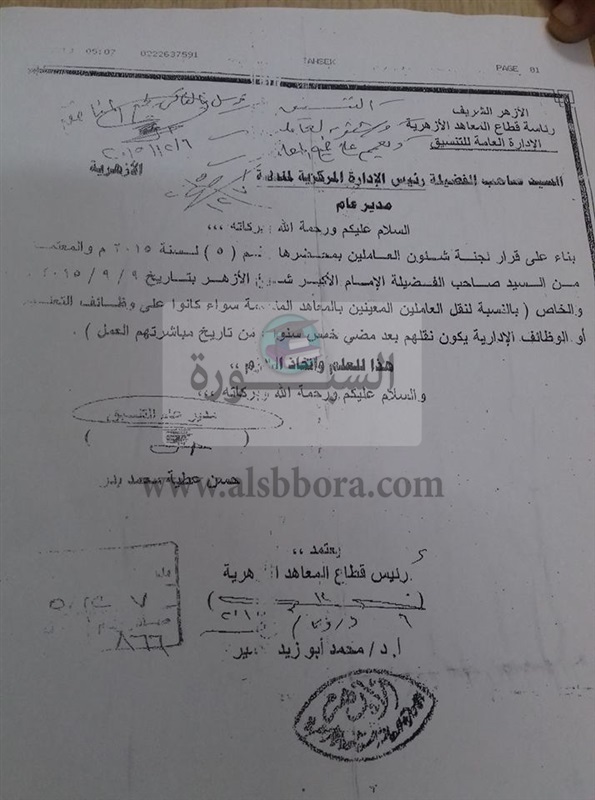 أخبار الأزهر بالمستندات.. "الازهر" يصدر منشور بخصوص نقل المعلمين الأربعاء 11/أكتوبر/2017 - 05:07 م facebook twitter whats x facebook twitter rss feed facebook twitter whats