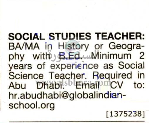 تعلن مدارس أبو ظبي الإماراتة عن وظائف جديدة للمعلمين والمعلمات وذلك وفقا لنص الإعلان التالي:-