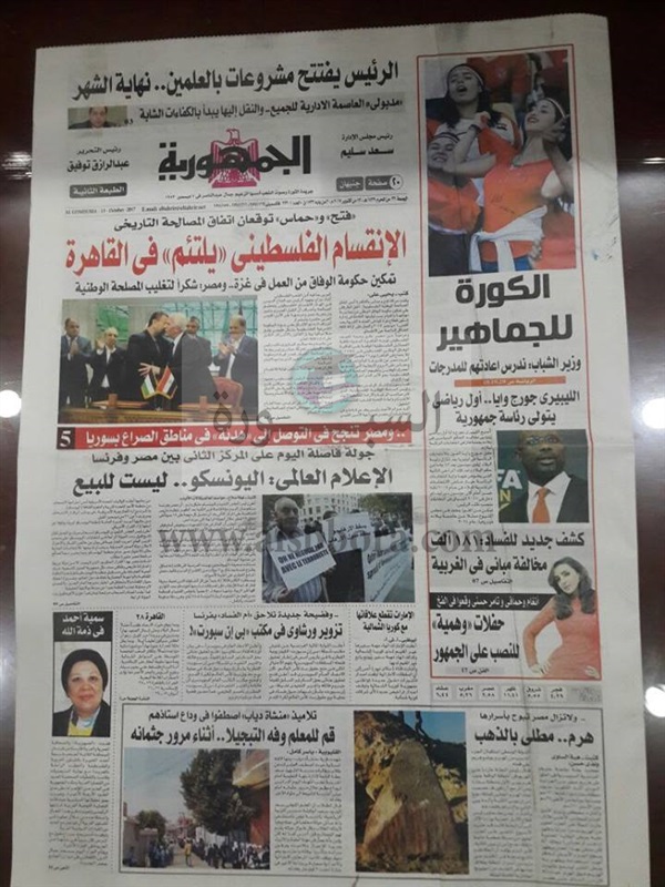تنشر "السبورة" أهم عناوين جريدة الجمهورية في عدد الغد يوم الجمعة 13 اكتوبر والتي تضمنت العناوين التالية: