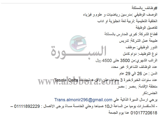 تعلن مدرسة خاصة في السعودية عن وظائف جديدة للمعلمين والمعلمات وذلك وفقا لنص الإعلان التالي:-