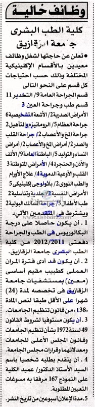 تعلن جامعة الزقازيق عن وظائف جديدة لأعضاء هيئة التدريس "من حملة الماجستير والدكتوراه" وذلك وفقا لنص الإعلان التالي:-