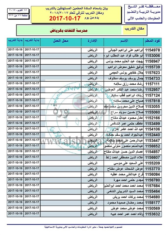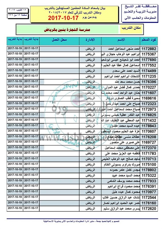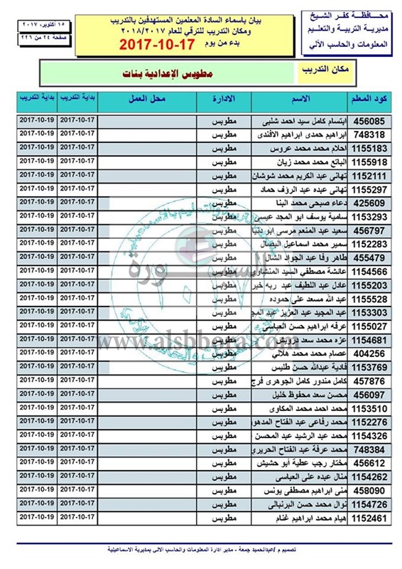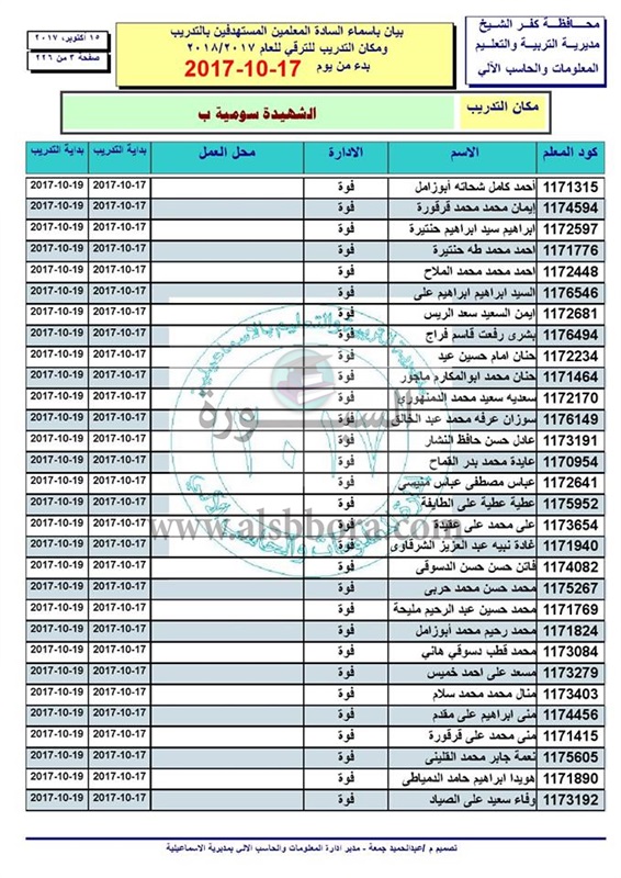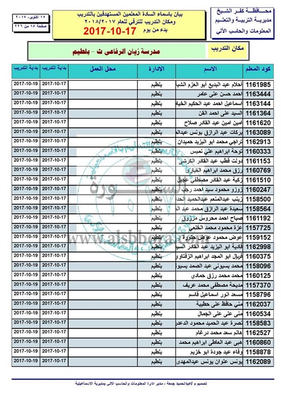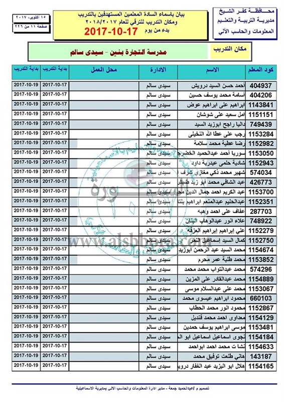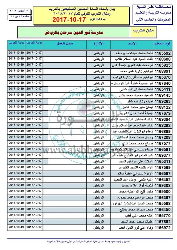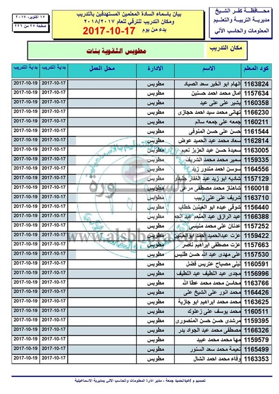ننشر أسماء المعلمين والاخصائيين المستهدفين للتدريب من أجل الترقى بدء من 17 الى 2017/10/19