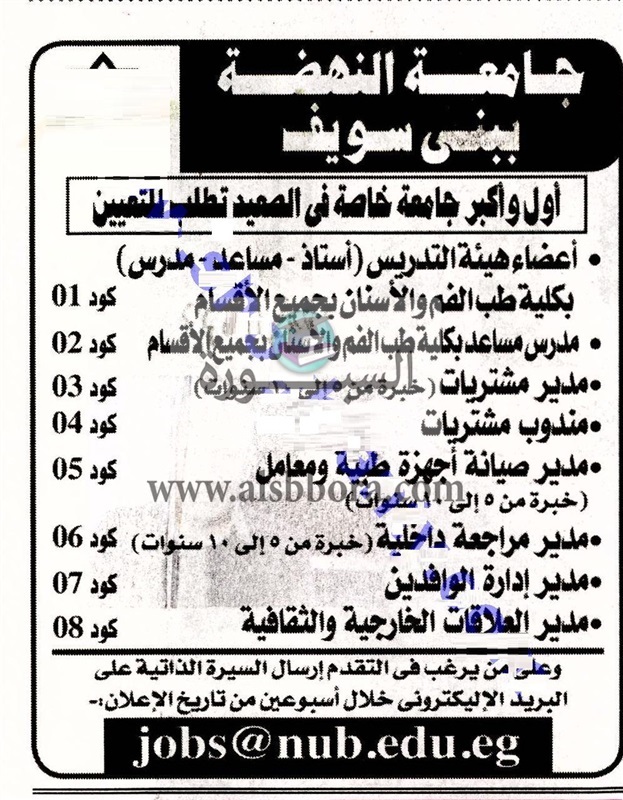تعلن جامعة النهضة عن وظائف جديدة لأعضاء هيئة التدريس "من حملة الماجستير والدكتوراه" علما بأن أخر موعد للتقديم 20 أكتوبر وذلك وفقا لنص الإعلان التالي:-