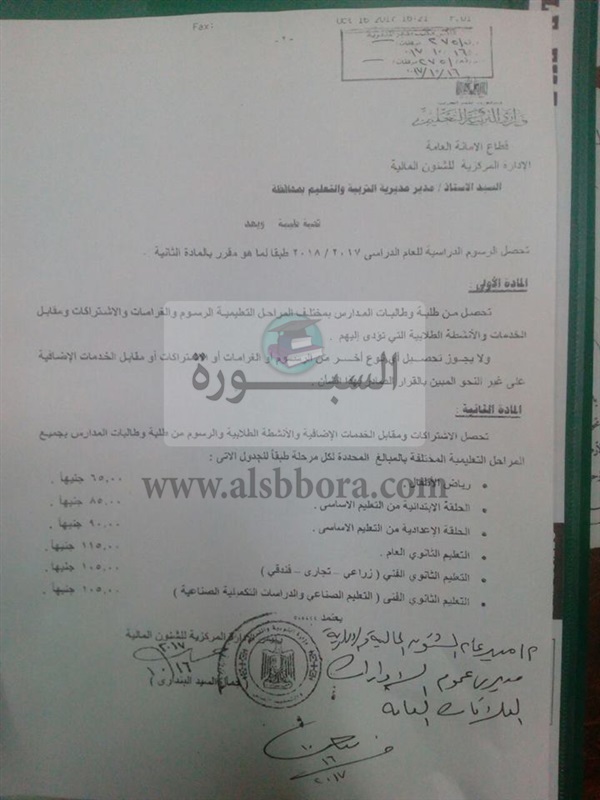 2017، 2018، حيث يتم تحصيل المصروفات من الطلاب وفق النشرة الجديدة للمصروفات الدراسية.