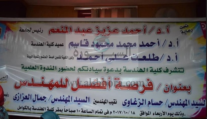 حضر د. احمد عزيز رئيس جامعة سوهاج ندوة ‘ من اجل فرصة افضل للمهندسين ‘ والتي نظمتها اليوم كلية الهندسة تحت اشراف د. احمد قاسم عميد الكلية وذلك بقاعة المؤتمرات بمقر الكلية
