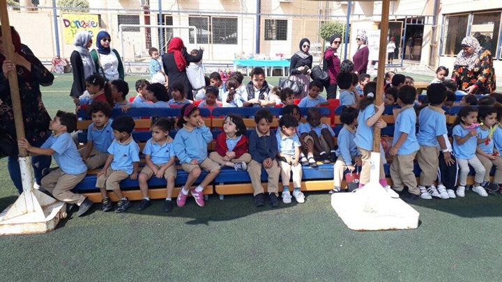 بدأ الحفل الساعه ١١صباحا بشاركة طلاب المدرسه قسم الامريكان واستمر الاحتفال الي