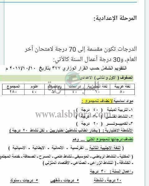 عاجل.. ننشر كشف توزيع درجات المرحلة الاعدادية لأعمال السنة وامتحان آخر العام للعام الدراسى 2018/2017
