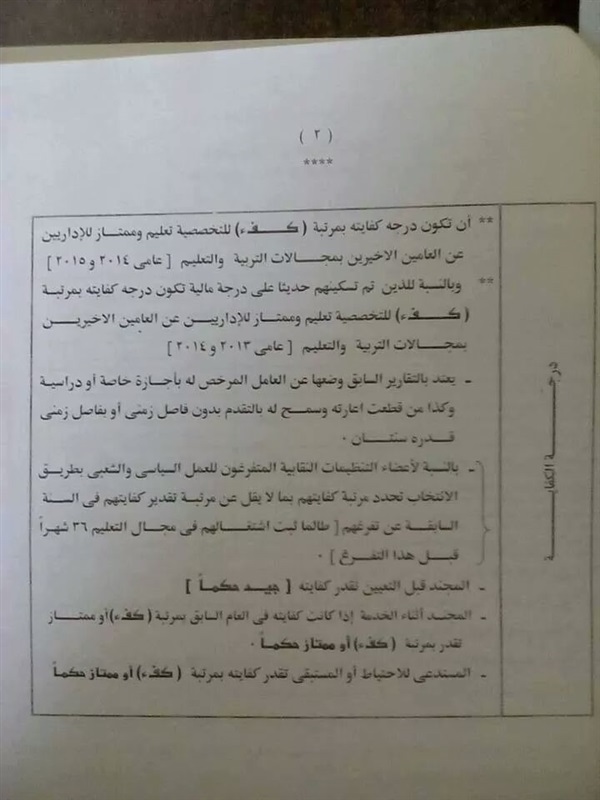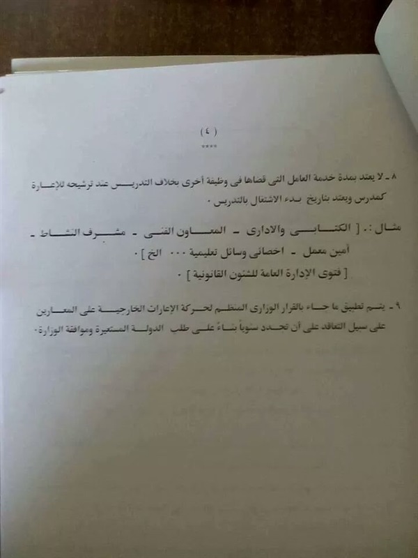 لايزيد السن عن 50 سنة للمعلمين وشاغلى الوظائف الادارية والمالية والمكتبية والعمالية