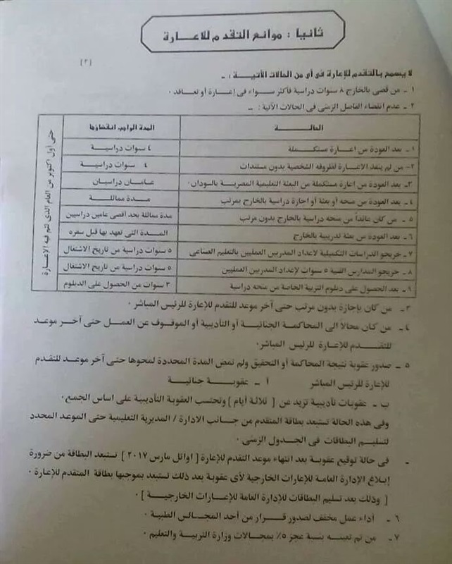 لايجوز التقدم بطلب اعارة للحاصلين على اجازة بدون مرتب الذين سبق اعارتهم او ندبهم للسودات كتابة مدة الاعارة او الندب والامر التنفيذى ببطاقة الاعارة