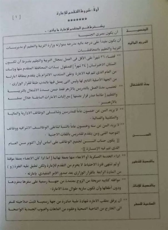 التعليم تعلن عن بدء حركة الاعارات الخارجية للعام الدراسى الجديد وتحدد الشروط