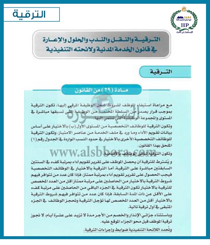 بالمستندات| تعرف على الترقية والندب والحلول والاعارة فى قانون الخدمة المدنية ولائحته التنفيذية