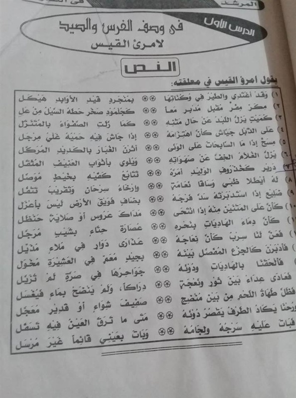 ومعلقة امرئ القس في وصف الفرس والصيد