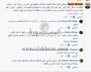 قال الدكتور طارق شوقي: "وصلني منكم مشكلة التقويم، واختلاف تطبيقها فى المدارس. ابحث الأمر وسوف أبلغكم بما استقر عليه الأمر. نحن نبذل كل الجهد بأدوات ضعيفة ونستجيب قدر الإمكان. أرجو أن نقدر اهتمام الوزارة بالمتابعة المستمرة وحل المشاكل بدلاً من مكافأة كل جهودنا بأن يقول البعض الوزارة تتراجع لأن القرارات غير مدروسة كما حدث كثيرًا".