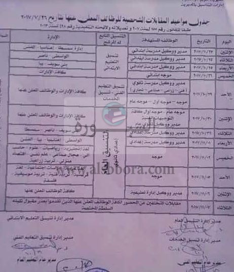 حيث بدأت المقابلات يوم الاثنين 10/23لادارات سمسطا واهناسيا والفشن والثلاثاء لادارتي والواسطى وناصر والأربعاء بني سويف وببا وتستكمل غدا الخميس بمقابلات موجه ابتدائي جميع المواد