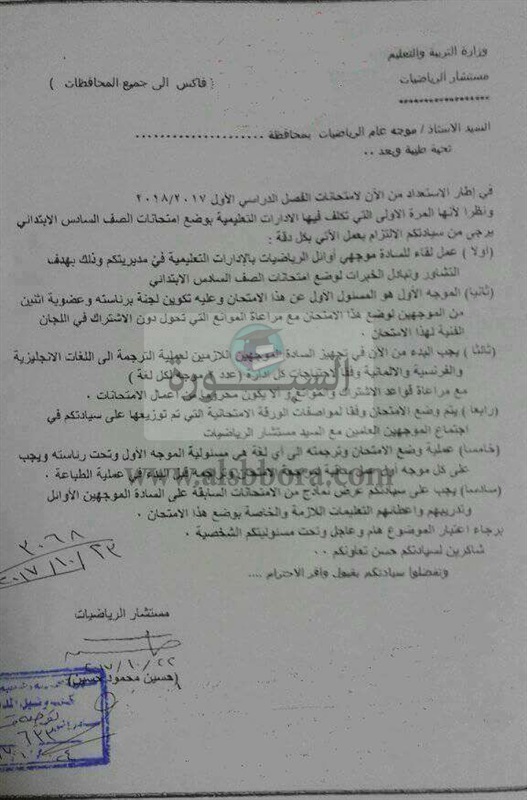 وزارة التربية والتعليم تصدر منشورا هاما الى المديريات والادارات التعليمية بشأن امتحانات الصف السادس الابتدائى