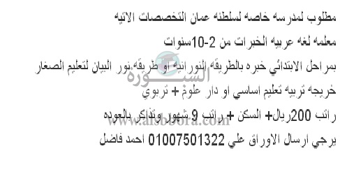 تعلن مدرسة خاصة في سلطنة عمان عن وظائف جديدة للمعلمين والمعلمات وذلك وفقا لنص الإعلان التالي:-