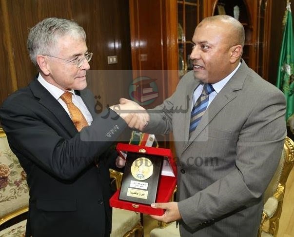 محافظ المنوفية يهدي درع المحافظة للسفير الألماني وهاني عازر