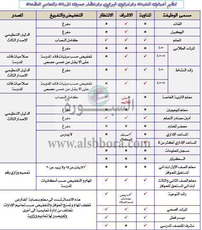 ينشر موقع السبورة صورة توضح مهام كافة طاقم المدارس في المناوبة الإشراف والانتظار بالمملكة العربية السعودية