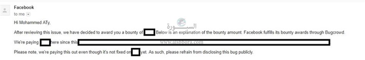 الجدير بالذكر ان الفيس بوك من المواقع التي تسمح للباحثيين الامنيين باكتشاف الثغرات وابلاغهم بها لضمان تطوير موقعهم .