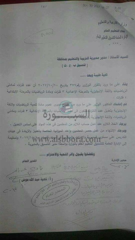 أعلنت وزارة التربية والتعليم والتعليم الفنى تخفيض نصاب مادة اللغة الانجليزية والرياضيات من 3 فترات الى فترتين ونصف، ومادة الرياضيات بالمرحلة الابتدائية الى 3 فترات بدلا من 4.