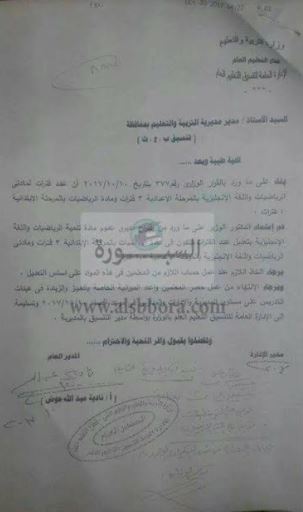 وهذه صورة من قرار وزارة التربية والتعليم الذى استجاب لرأى الناشط التعليمى