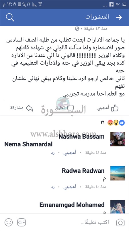 وأضافت ولى الامر، لما سألت قالولي دي شهاده قلتلهم وكلام الوزير !!!!!!!!!!!! قالولي دا الي عندنا من الاداره، كده بجد يبقي الوزير في حته والادارات التعليميه في حته تاني خالص، ارجو الرد علينا وكلام يبقي نهائي علشان نفهم مع العلم احنا مدرسه تجريبي.